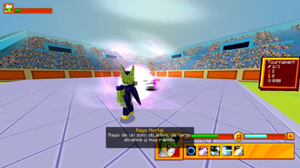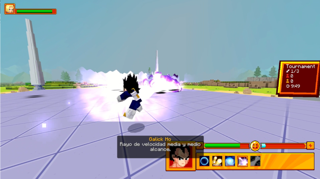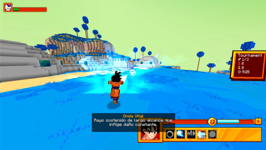 Cada personaje cuenta con habilidades únicas (como curiosidad, si juegas en español podrás disfrutar del Onda Vital de siempre) y todos con sus movimientos más característicos, muy bien adaptados y visualmente increíbles para ser Minecraft. También cuentan con ataques Ultimate, que serán mucho más poderosos. En el caso de los Saiyan, se harán Super Saiyan mientras la barra Ultimate esté llena.