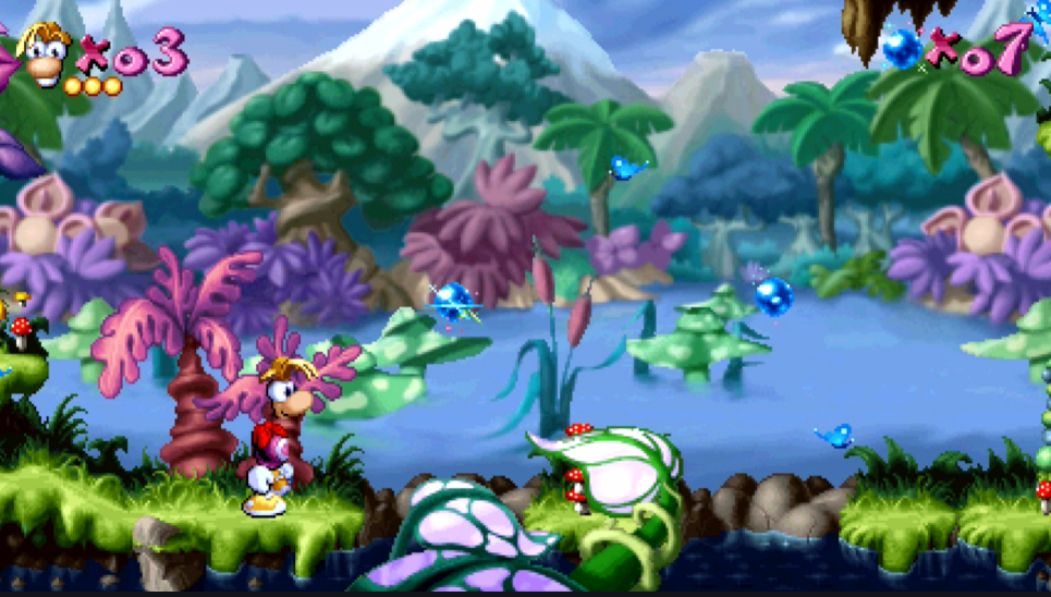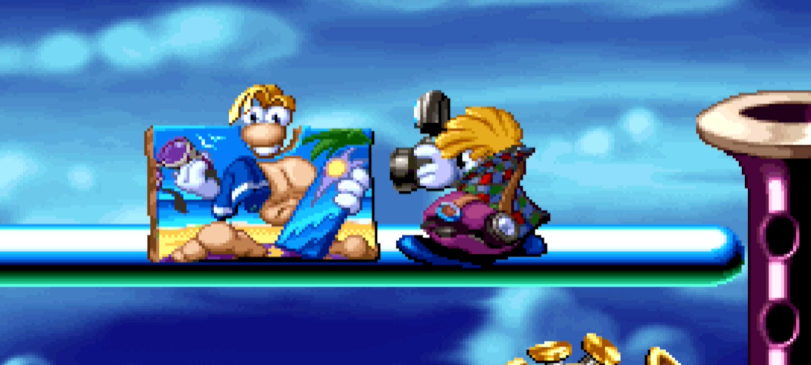 Para los que no conozcáis Rayman, es un personaje en un mundo lleno de magia, con un diseño bastante único y poco repetido. No tiene brazos ni piernas, algo que podrías pensar que es una gran desventaja, pero al contrario, le da mucha flexibilidad tanto al personaje como al juego, dando una sensación elaborada que pocos juegos podrían lograr en 1995 o incluso hoy en día.