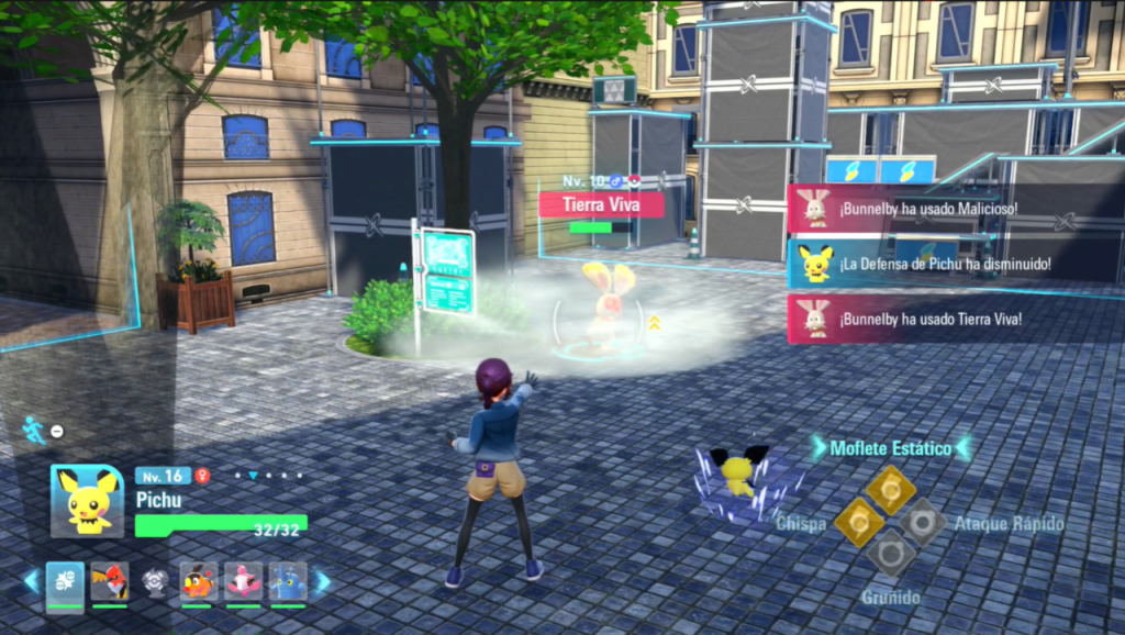 La gran novedad de Leyendas Pokémon: Z-A es su sistema de combates en tiempo real. No hay turnos: los ataques, las recargas y los desplazamientos ocurren simultáneamente. Esto exige estrategia, reflejos y precisión.