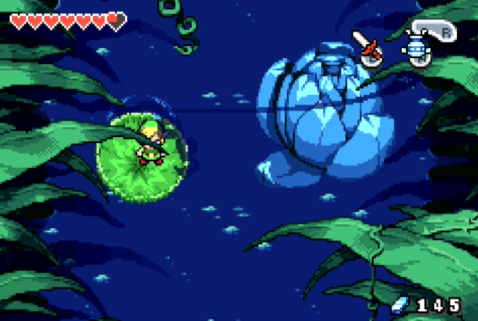 The Legend Of Zelda: The Minish Cap es un juego en el que su mecánica principal es hacerse pequeño, un concepto que ya se había utilizado en mucha menor medida en Four Swords como un objeto, pero aquí se emplea en su mayor escala, no solo veremos a Link pequeño, si no además todo un mundo espectacular gigante lleno de secretos, tesoros y peligros que a simple vista no lo parecerían.